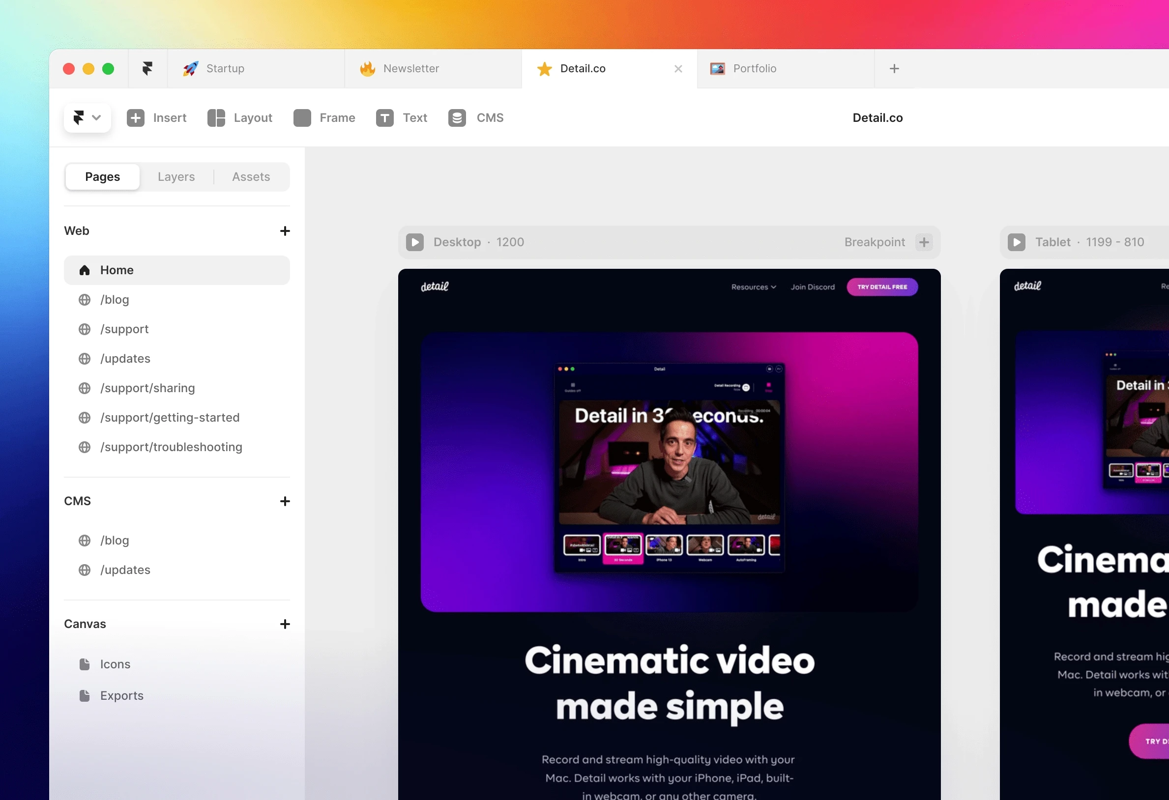 Framer adalah platform desain alternatif Figma yang memiliki fitur lengkap dan cukup populer di kalangan UI/UX desainer. Salah satu keunggulan pltform ini adalah Anda bisa menggunakan bahasa pemrograman JavaScript dan React di dalamnya.Â