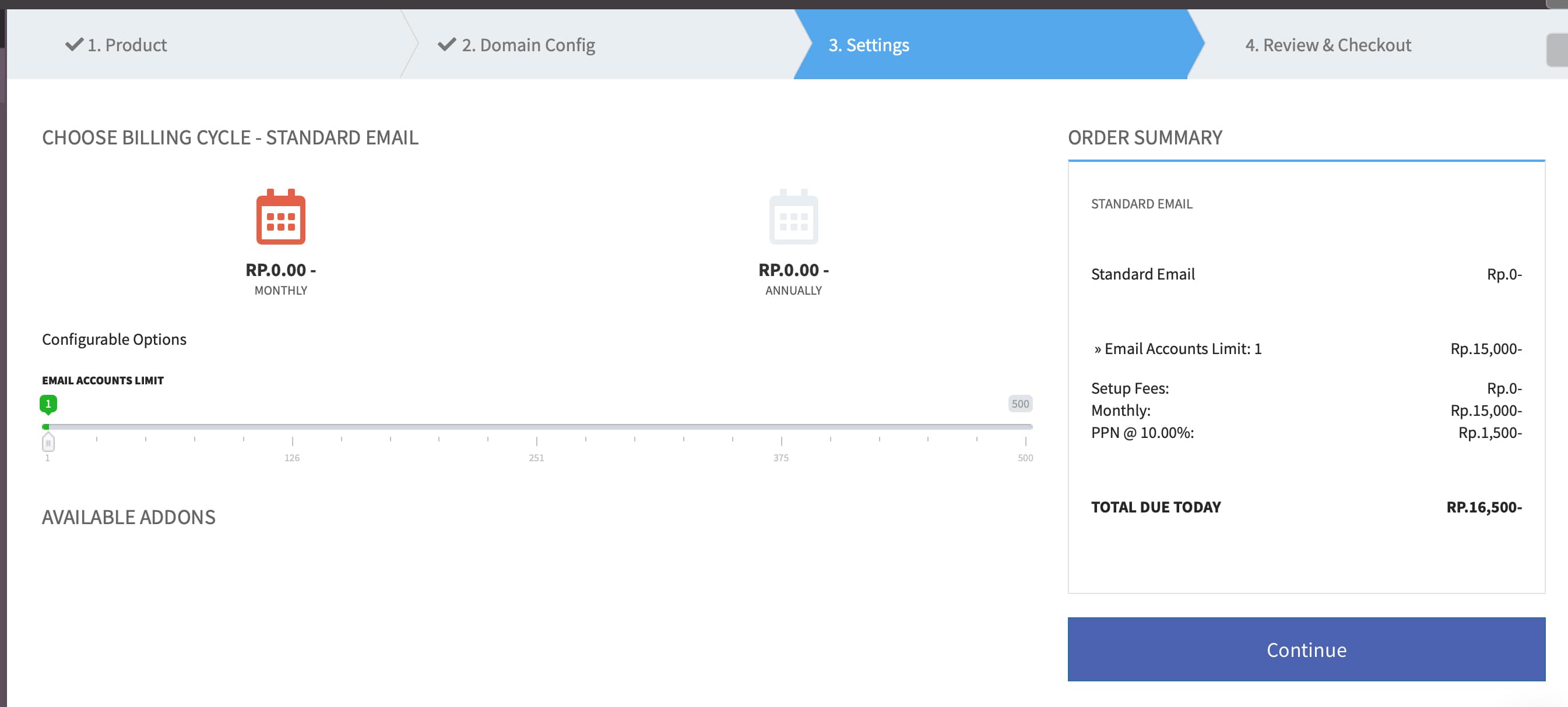 5. Setelah pembayaran terverifikasi, daftarkan namaemail@namadomain(dot)com kamu sebanyak paket yang kamu beli