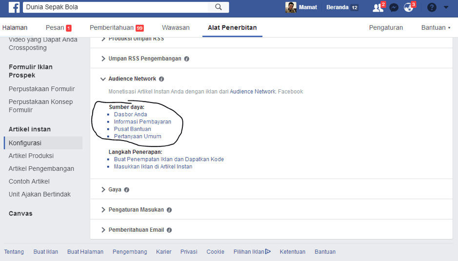 Jadi kebayang kan sekarang, bagaimana kita bisa dapet duit dari Facebook? Yaitu jadi Publisher, penayang iklan dari Facebook. Nah kalau saya pernah nyoba pakai Artikel Instan Facebook untuk nayakin iklannya. Jadi ketika iklan Facebook itu tayang di website Artikel Instan saya, saya dibayar oleh Facebook.