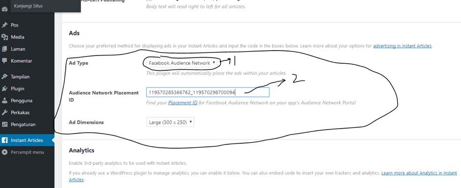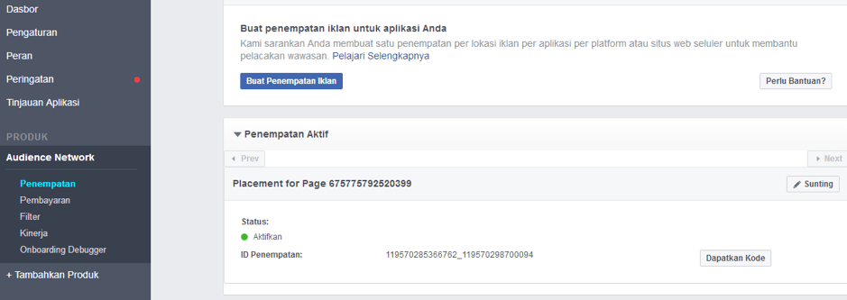 PENEMPATAN IKLAN : gampang lah ini mah tinggal, udah otomatis, tinggal klik di dasbor > audience network > penempatan. Tinggal copas tuh ID Penempatannya, lalu masukin ke plugin artikel instan wordpress kamu.