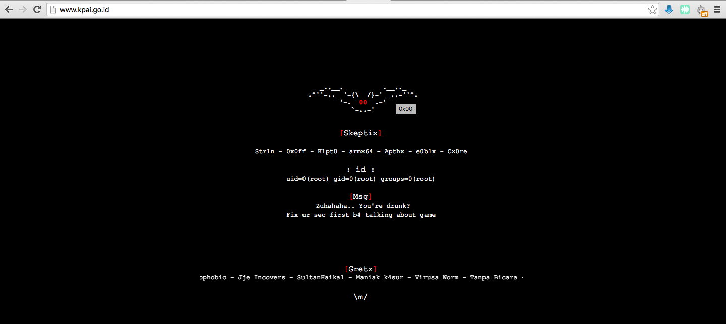 Nah, beberapa waktu lalu juga  situs KPAI telah dihack. Bahkan pada halamannya diubah menjadi hitam dengan tulisan besar, “HACKED BY RAKYAT INDONESIA!” Didalamnya berisi pesan memprotes kekerasan yang dialami mahasiswa dalam aksi demo kemarin dan juga pesan mendukung perjuangan KPK.