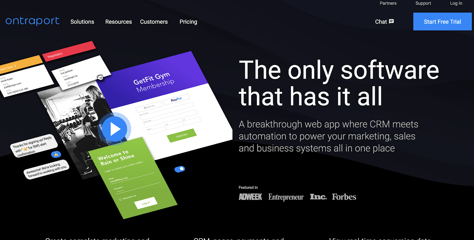 Ontraport adalah perangkat lunak otomatisasi bisnis untuk pengusaha, solopreneurs, dan usaha kecil. Ontraport memiliki CRM yang berfungsi sebagai otomatisasi pemasaran, ia juga memiliki beberapa fitur lain untuk menjalankan dan menumbuhkan bisnis kecil, berikut ini tools yang dapat diterapkan oleh Ontraport :