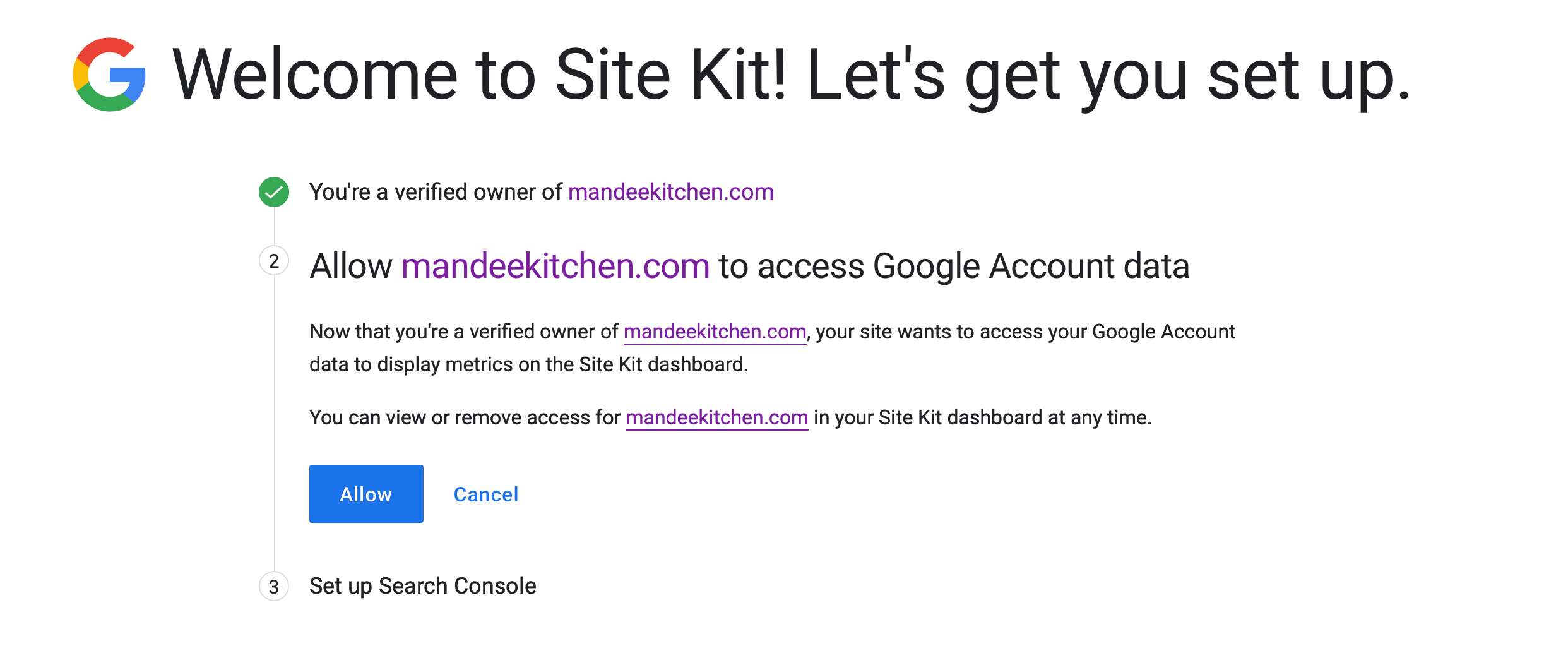 4. Jika Anda sudah melakukan verifikasi, silakan memberikan akses website dengan akun Google Anda