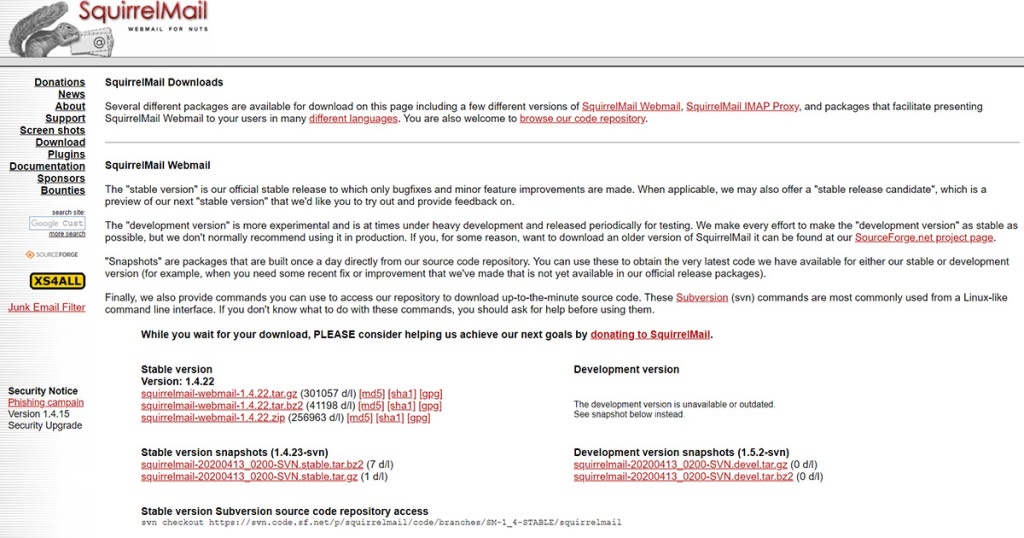 Proyek webmail yang dimulai oleh Nathan dan Luke Ehresman 20 tahun lalu ini adalah aplikasi webmail yang mempunyai atau berbasis web. Webmail SquirrelMail menggunakan arsitektur plugin untuk mengakomodasi fitur tambahan di sekitar aplikasi inti, dan lebih dari 200 plugin tersedia di situs web SquirrelMail. Webmail ini juga tersedia dan dapat digunakan pada LAMP dan sistem operasi lain yang juga mendukung platform PHP.
