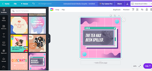 Selain warna, Anda juga bisa menggunakan Animasi. Canva memiliki beberapa Animasi yang bisa Anda kustomisasi sesuai dengan keingingan Anda. Seperti yang bisa Anda lihat, Anda bisa mengedit text agar sesuai dengan kebutuhan Anda. Tidak hanya text, Anda juga bisa mengganti warna agar sesuai dengan kemauan Anda. Setiap elemen pada template ini bisa Anda ganti dengan mudah.