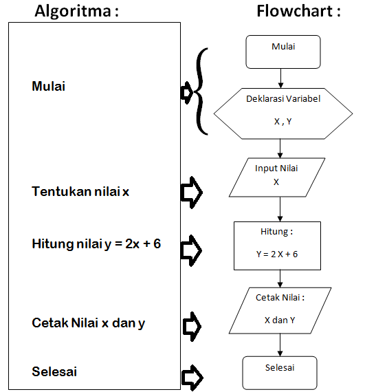 Misalnya contoh berikut ini, jika anda ingin menentukan nilai x dan y yang ada dalam y = 2x+6. Nah, nantinya nilai x ini akan mengalami proses dan kondisi. Jika kondisinya memenuhi maka akan dicetak sebagai outptan, dan jika kondisinya tidak memenuhi syarat maka akan dilakukan perulangan dengan nilai berikut hingga menghasilkan outputan beberapa angka yang dicetak adalm nilai x dan y.