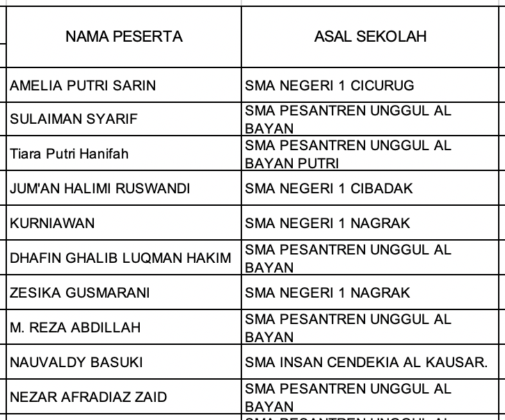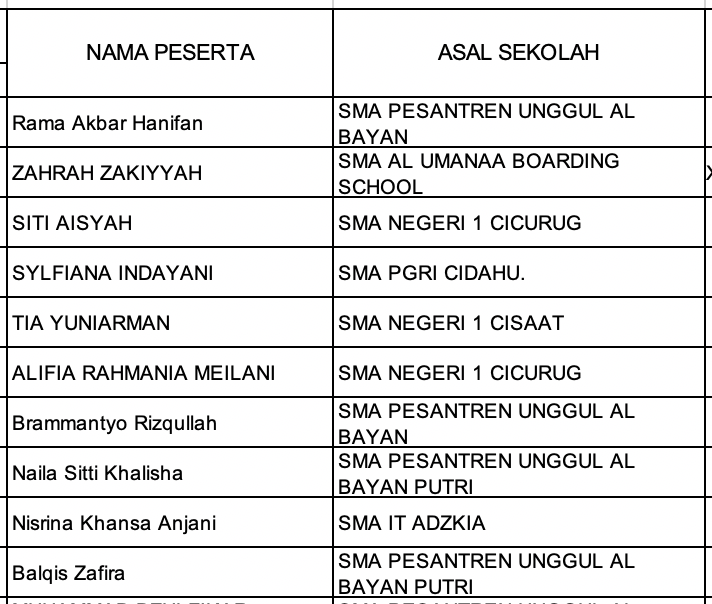 Sehubungan dengan itu juga, kita ingin mengumumkan daftar nama 10 besar peserta setiap Cabangnya :