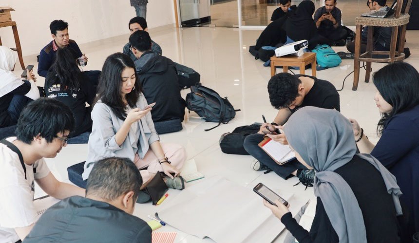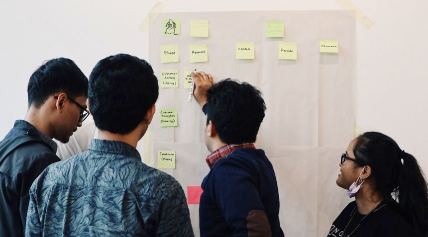 Pada tiap langkah ini pun, tiap peserta dikelompokan dan diminta untuk merancang sebuah journey mapping dari brand-brand yang sebelumnya sudah disepakati. Tiap kelompok harus memikirkan dan menuangkan sebuah skenario terlebih dahulu. Kemudian masuk ke penentuan phase, customer goals, customer actions, channels, thoughts, emotional journey dan opportunity.