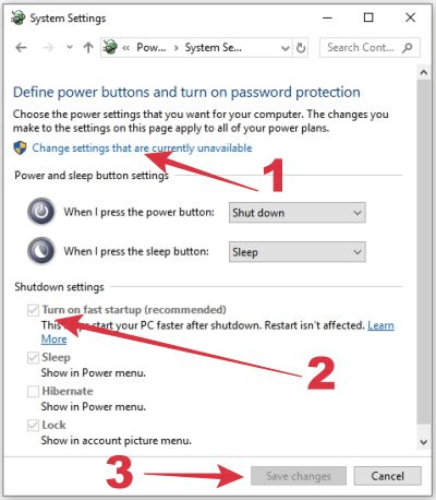 Settings > System > Power and sleep > Additional power settings > Choose what the power buttons do > klik Change settings that are currently unavailable > matikan/hidupkan Turn on fast start up > Save changes.