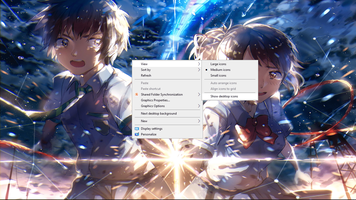 Sangat direkomendasikan untuk menyembunyikan icon-icon di desktop. Alasannya? Ketika log in ke desktop, sistem akan meload semua yang akan ditampilkan di desktop termasuk juga icon. Semakin banyak icon yang ada di desktop, maka sistem akan butuh waktu lebih lama untuk melakukan load. Untuk menyembunyikan Icon di dekstop dengan cara berikut ini :