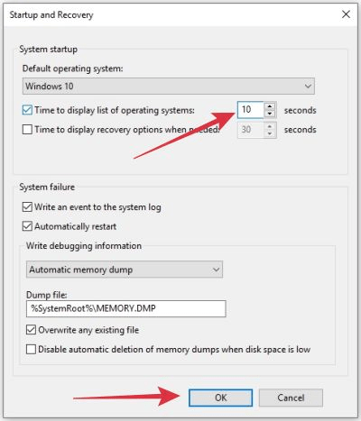 Pilih tab Advanced kemudian lihat pada bagian Startup and Recovery > klik tombol Settings. Lihat pada bagian Time to display list of operating systems > ubah nilainya menjadi 10 atau 15 detik > OK.