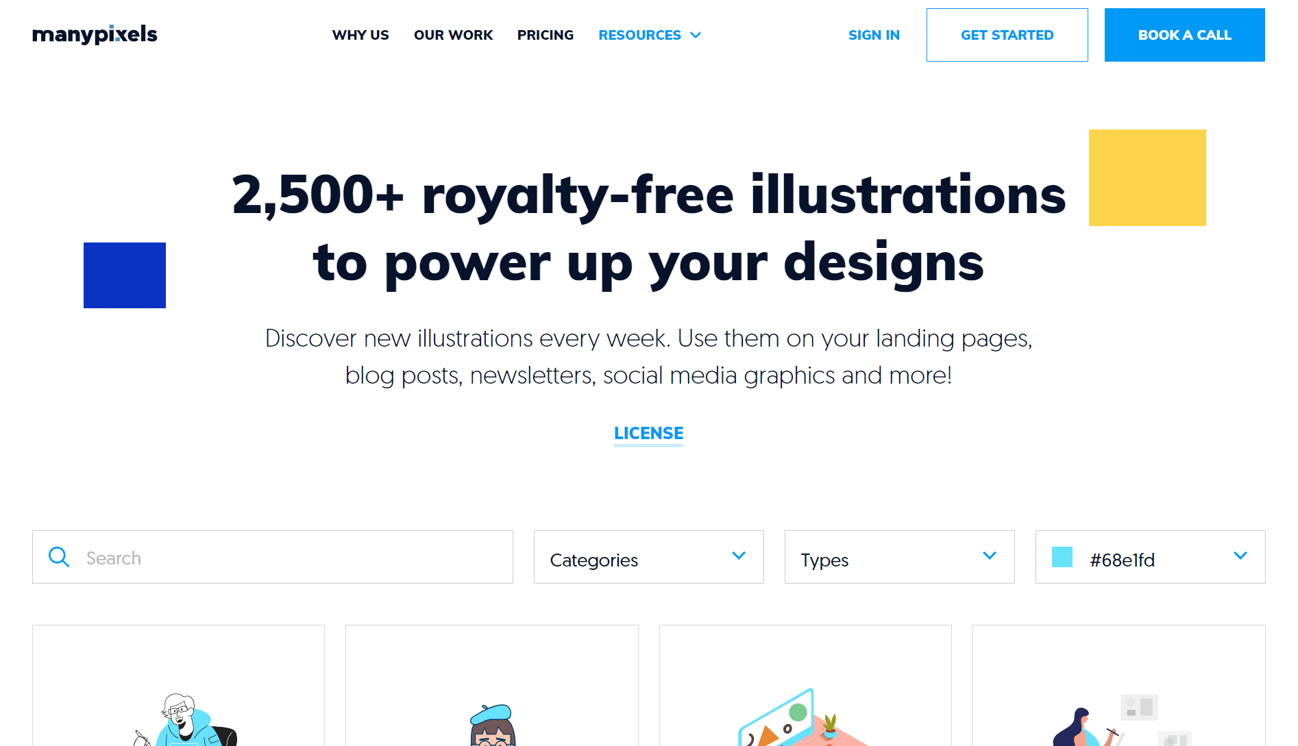 ManyPixels adalah website ilustrasi gratis terakhir yang bisa Anda coba dalam rekomendasi ini. Dalam website ini, Anda bisa memilih ilustrasi dari berbagai kategori, kemudian memilih warna default sesuai keinginan Anda.