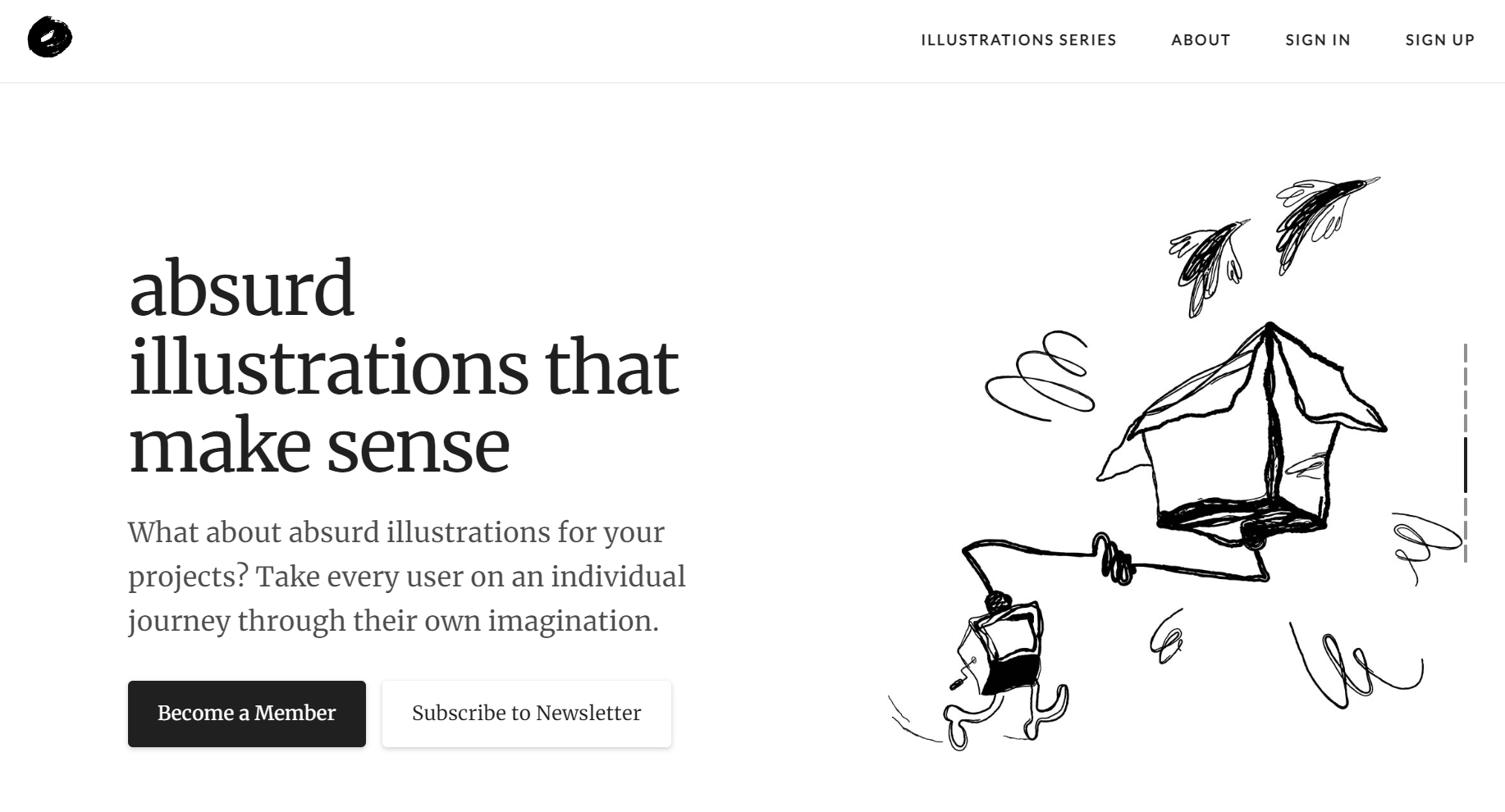 Absurd adalah website ilustrasi gratis dengan gambar khas ilustrator Diana Valeanu. Website ini sangat coock bagi Anda yang sedang mencari ilustrasi hitam putih dengan gaya unik. Sesuai namanya, website ini juga menyediakan berbagai ilustrasi abstrak yang dapat digunakan untuk desain Anda. Absurd sangat cocok bagi Anda yang ingin membuat desain kreatif dan mengkomunikasikan pesan yang kuat secara visual. Anda dapat mengunduh berbagai ilustrasi yang ada di website ini dalam format PNG.