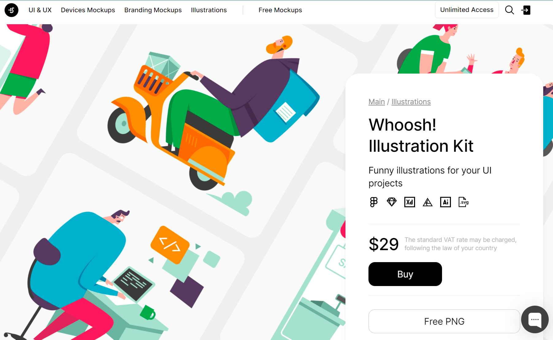 Dengan website ini, Anda bisa mendapatkan file PNG dari ilustrasi-ilustrasi yang ada di dalamnya secara gratis. Namun, jika ingin mendapatkan file vektor asli yang bisa diedit, Anda harus membayar layanan premium.