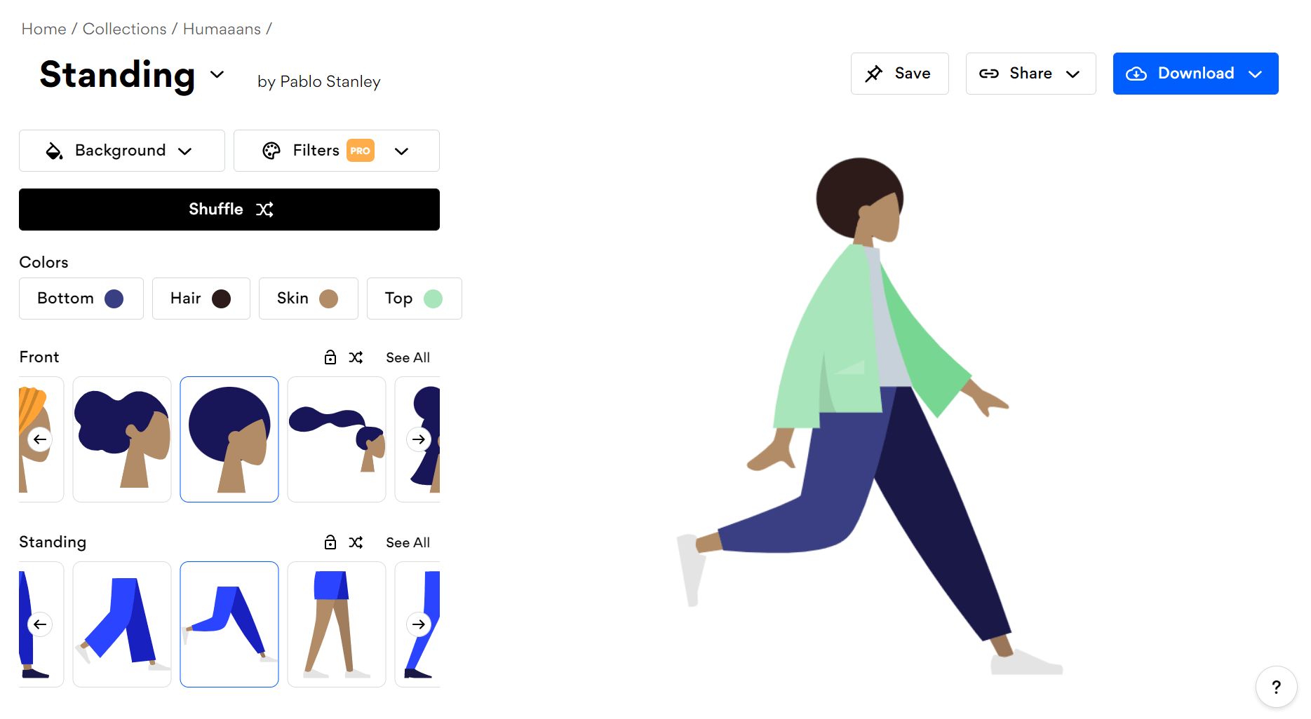 Seperti namanya, Humaaans hanya berfokus pada ilustrasi manusia saja, ya. Semua elemen ilustrasi yang ada di website ini dapat Anda gunakan secara gratis untuk keperluan pribadi maupun komersial. Berbagai elemennya sangat mendukung kreatifitas Anda, karena Anda bebas menggabungkan posisi, warna, gaya rambut, bahkan latar belakang.