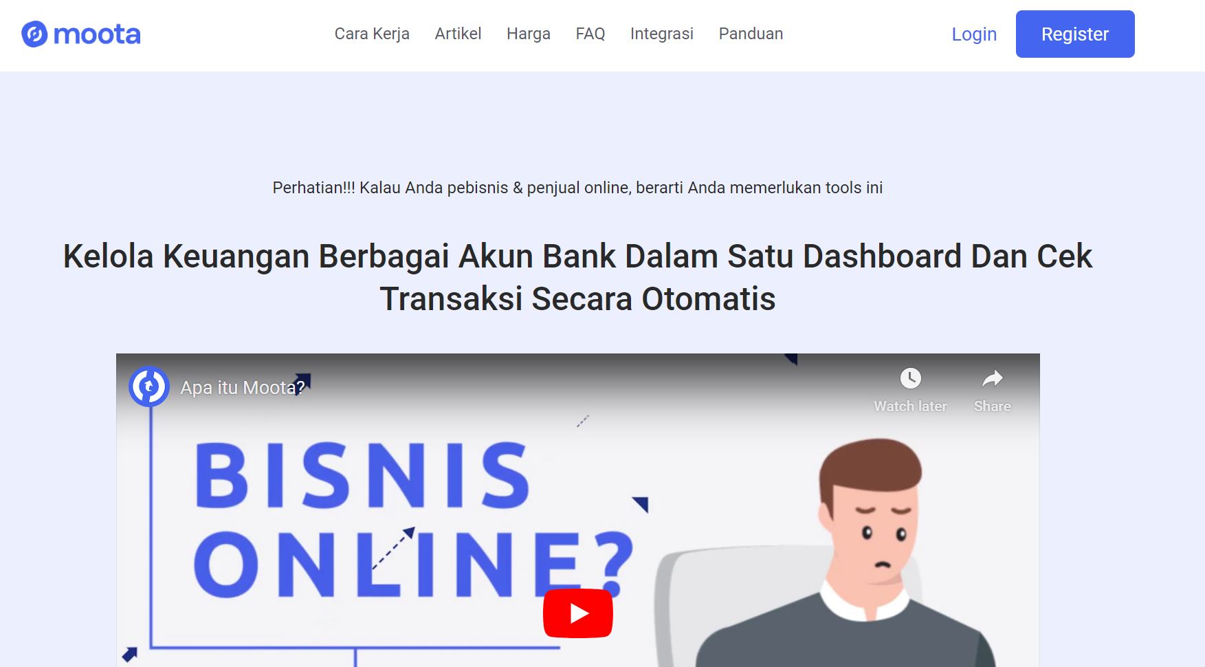 Diluncurkan pada November 2017 sebagai aplikasi web untuk cek mutasi bank otomatis, Moota kini menjadi solusi vital bagi pebisnis online. Berfokus pada layanan manajemen transaksi bank, Moota telah membantu lebih dari 7.200 pebisnis di seluruh Indonesia, termasuk perusahaan, startup, maupun UMKM.