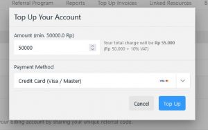 6. Setelah itu akan ada penambahan baru pada billing payment, klik Top Up Your Account.