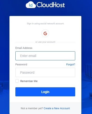 Sebelumnya, Anda telah melakukan custom domain pada akun TokoTalk Anda. Sekarang saatnya Anda melakukan custom domain dari sisi IDCloudHost. Pertama-tama, Anda harus masuk ke client area IDCloudHost melalui link http://my.idcloudhost.com/. Setelah itu, isi email dan password akun Anda dan klik Login.