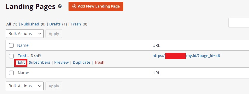 Halaman yang telah Anda buat juga bisa diedit lagi nantinya. Jika ingin melakukan perubahan, pilih menu SeedProd > Landing Pages. Pilih halaman yang ingin Anda ubah, kemudian klik Edit.
