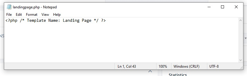 Landing Page adalah nama file template yang akan Anda gunakan. Nama ini dapat Anda ubah sesuai keinginan. Selanjutnya, simpan file tersebut dan akhiri nama file dengan .php. Misalnya, LandingPage.php