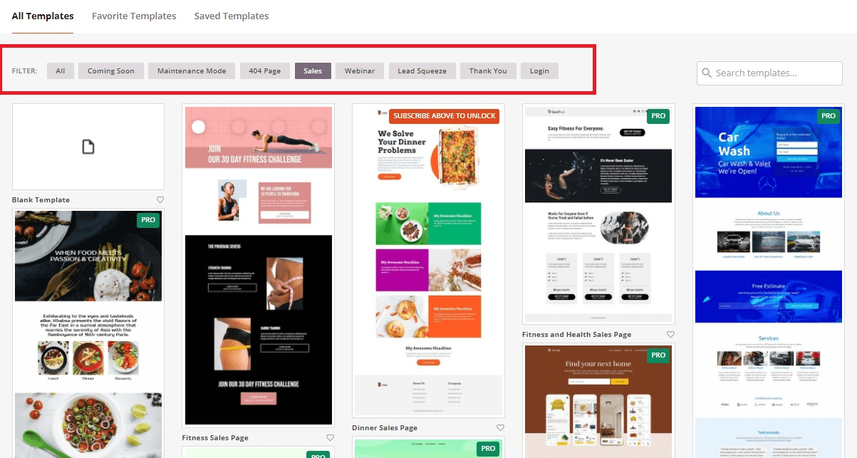 Selanjutnya, akan tampil halaman Page Template seperti berikut ini. Anda dapat memilih template sesuai keinginan dan kebutuhan pada halaman ini. Tidak hanya itu, ada juga filter kategori untuk membantu Anda mencari template yang cocok dengan website Anda. Klik pada filter pilihan Anda.