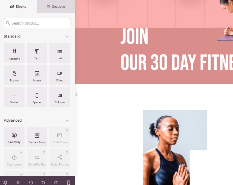 Setelah itu, halaman builder Seedprod akan tampil. Pada halaman ini, Anda bisa mulai menata layout dengan cara klik dan geser (drag and drop). Mulai dari teks, link, hingga gambar dapat Anda atur sesuai keinginan dengan mudah.