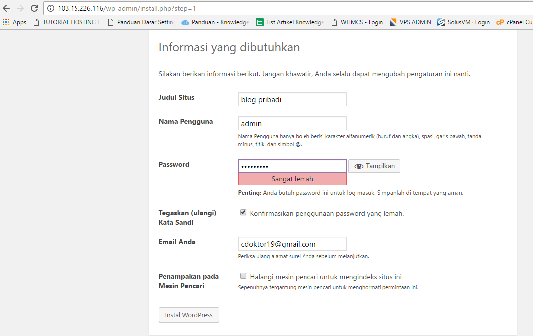 Ketika Anda selesai dengan langkah ini, Anda dapat melanjutkan dengan instalasi WordPress.