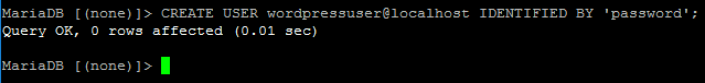 CREATE USER wordpressuser @localhost IDENTIFIED BY ‘ password ‘;