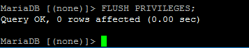 Sekarang pengguna memiliki akses ke database, kita perlu menyiram hak sehingga MySQL tahu tentang hak istimewa baru-baru ini berubah bahwa kami telah membuat: