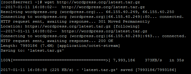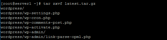 Ini akan men-download file arsip terkompresi yang berisi semua file WordPress yang kita butuhkan. Kita dapat mengekstrak file arsip untuk membangun kembali direktori WordPress dengan tar :