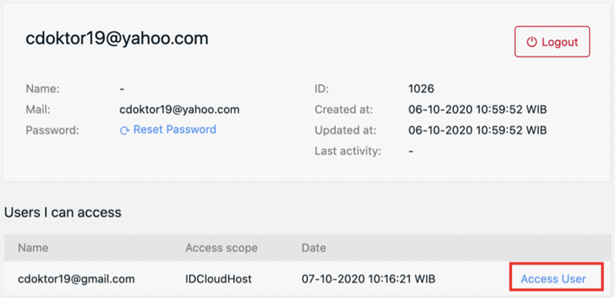 sehingga Access Delegate sudah valid dan agar terhubung ke resource yang ada padanya kita bisa klik Access User,