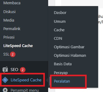 LiteSpeed Cache adalah plugin manajemen cache yang memiliki sangat banyak pengguna hingga saat ini. Plugin ini memiliki pilihan yang sangat beragam untuk Anda konfigurasikan. Jika Anda sudah menggunakan LiteSpeed Cache dan ingin menghapus cache dengan plugin ini, Anda bisa mengaksesnya lewat menu LiteSpeed Cache > Tools (Peralatan) pada dashboard WordPress Anda.