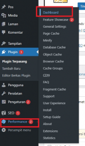 Semua pengaturan W3 Total Cache bisa Anda akses lewat menu Performance > Dashboard.