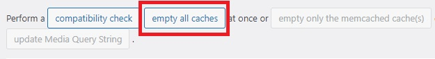 Setelah itu, klik tombol empty all caches yang berada pada bagian paling atas halaman.