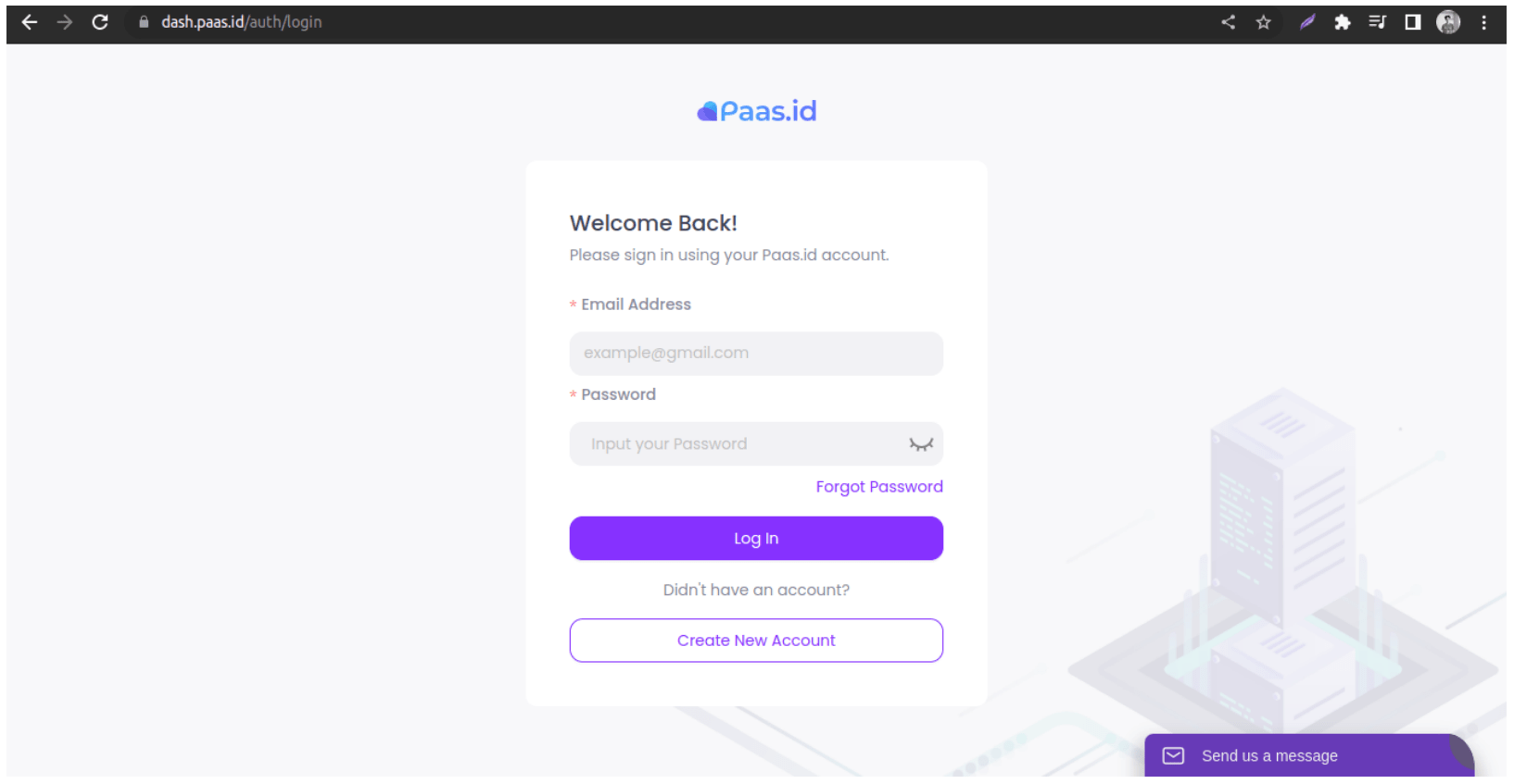 11. Selanjutnya, buka halaman login Paas.id berikut https://dash.paas.id/auth/login silakan login jika sudah mendaftar sebelumnya atau Anda daftar terkebih dahulu jika belum mempunyai akun.