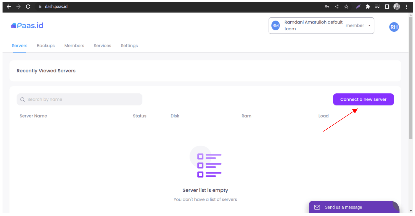12. Ketika sudah berhasil login silakan Anda pilih menu Servers setelah itu klik Connect a new server.