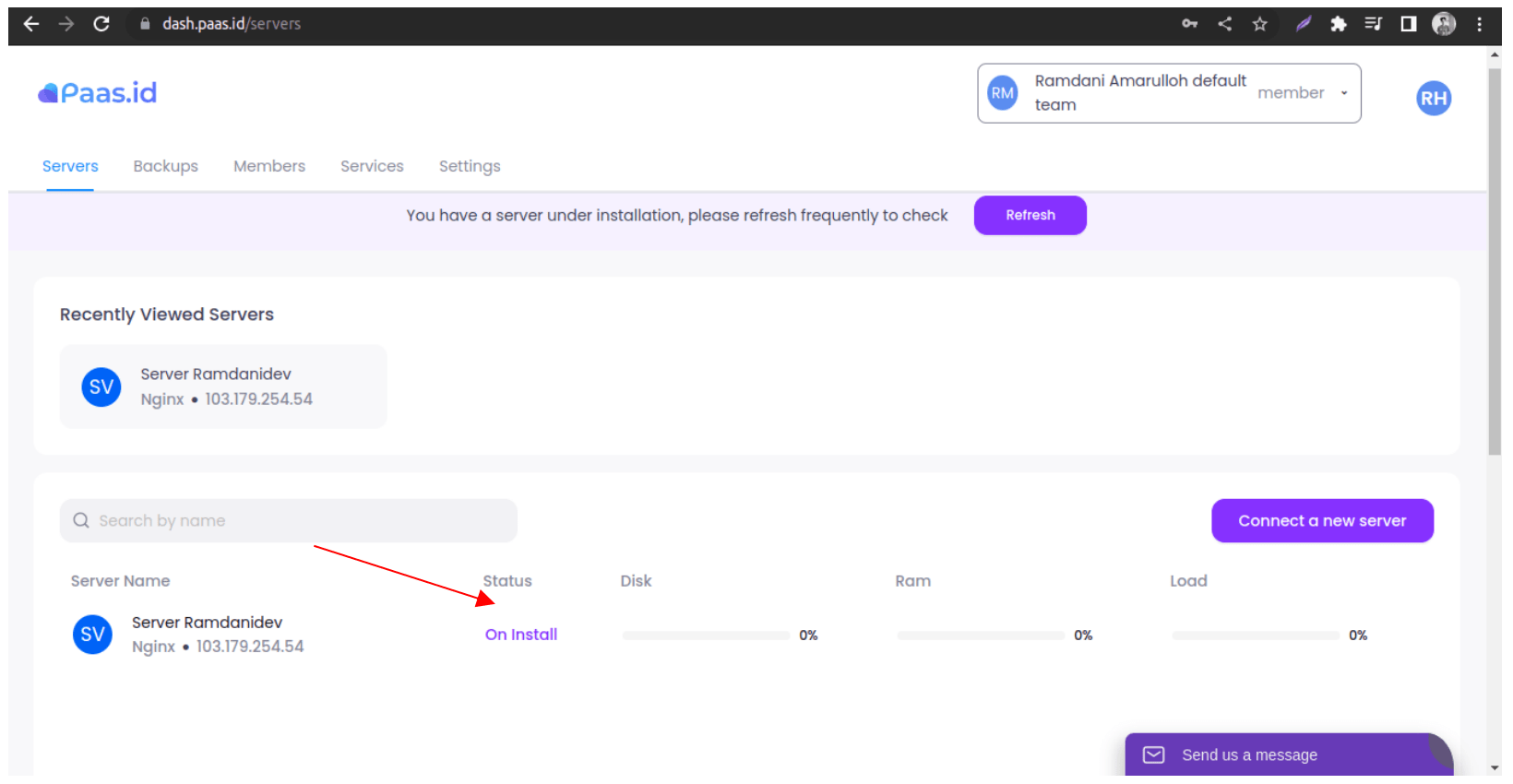 16. Selanjutnya, tunggu status On Install proses building pada server Anda, proses ini akan memakan waktu kurang lebih 10 menit, Anda bisa refresh setiap saat.