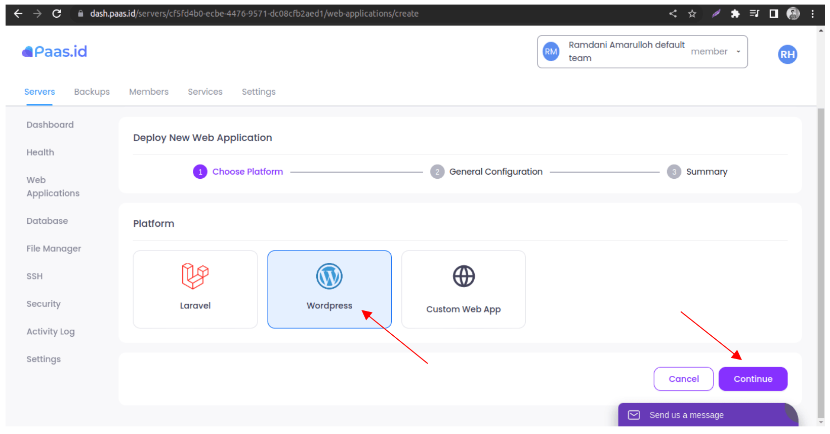 20. Silakan Anda pilih WordPress, lalu klik Continue.