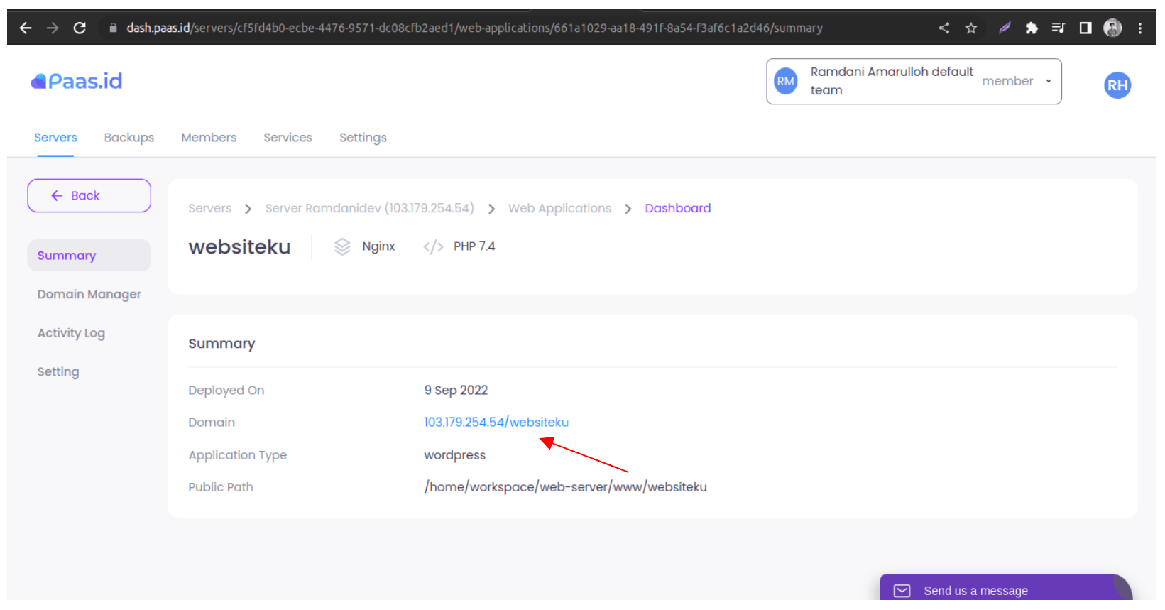 24. Selanjutnya Anda klik pada Domain link IP website yang Anda buat.