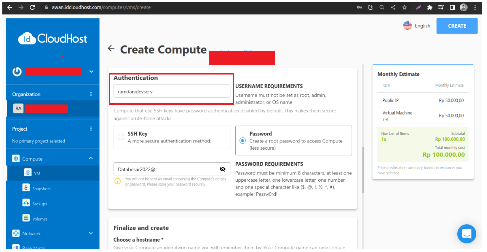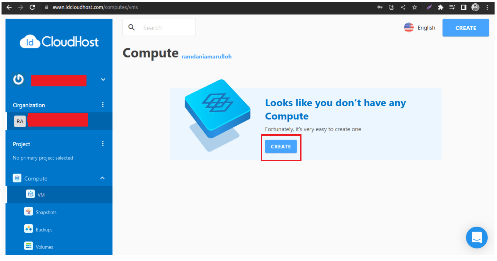 2. Setelah berhasil login silakan anda klik Create Compute.