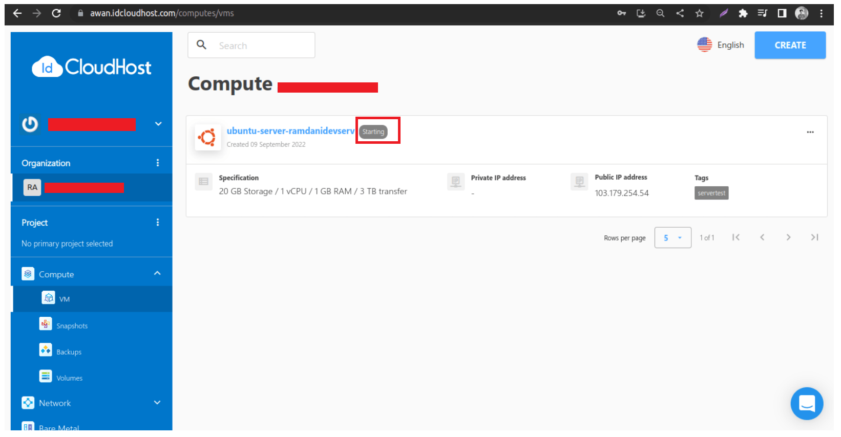 8. Prosess persiapan pembuatan compute sedang diproses silakan tunggu beberapa saat sehingga status Starting menjadi Running.