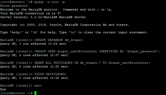 Membuat Database dan pengguna untuk Drupal pada CentOS 7