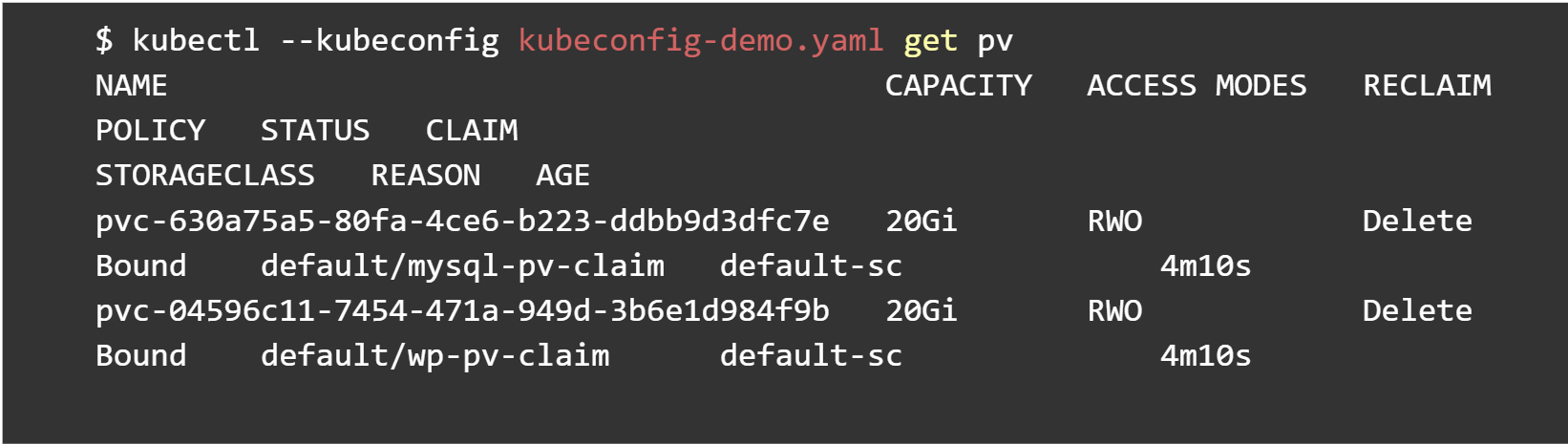 4. Cek pv (persistent volume) juga untuk wordpress dan mysql apakah sudah terbentuk dengan sempurna.