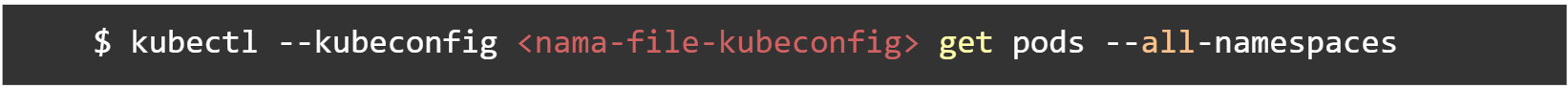 1. Lakukan koneksi ke cluster dengan konfigurasi untuk cek pod yang ada, menggunakan perintah berikut pada terminal: