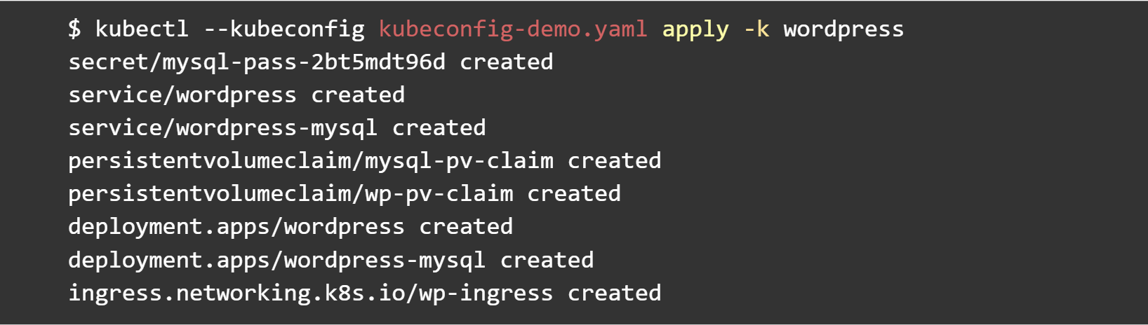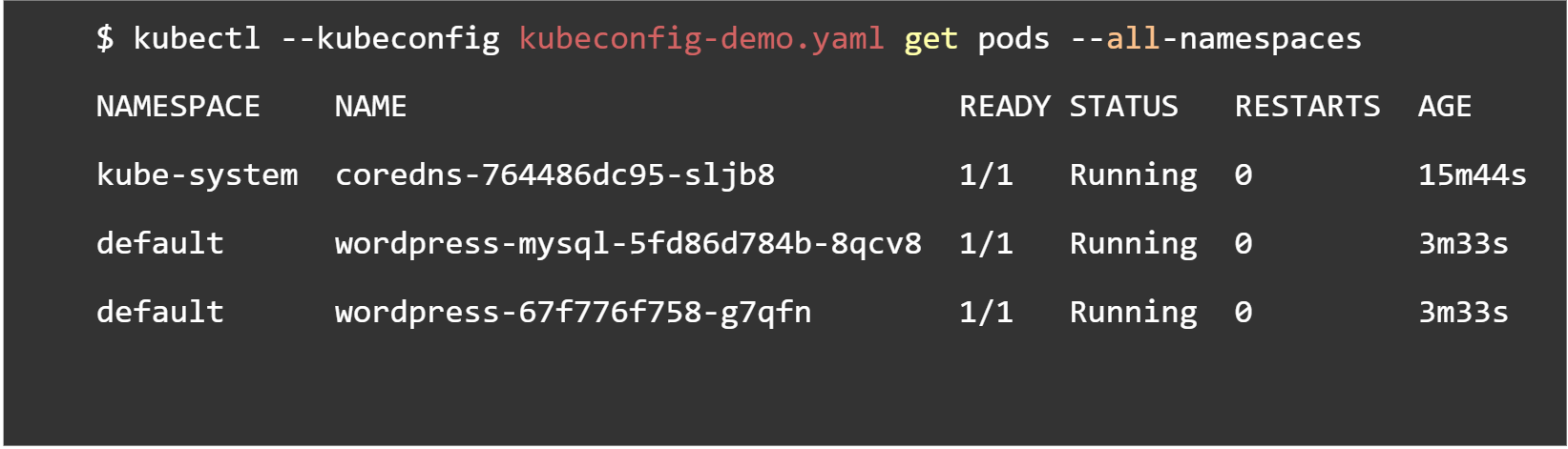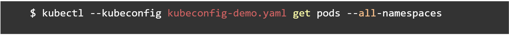 Dalam contoh ini, nama file konfigurasinya adalah kubeconfig-demo.yaml, maka perintahnya: