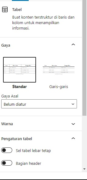 Anda dapat menambahkan tabel secara langsung melalui opsi yang ada di editor Gutenberg memang cepat, tapi jika ingin pengaturan yang lebih lengkap Anda bisa menggunakan plugin yang telah kami sarankan.