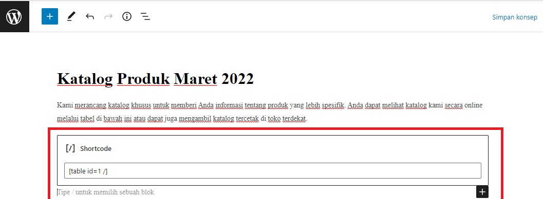 Setelah itu, buat postingan seperti biasa dan copy-paste shortcode dari tabel sebelumnya. Selanjutnya, tabel sudah masuk dan bisa Anda posting segera.