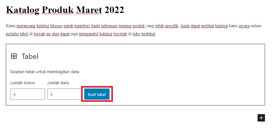 Anda langsung bisa mengatur jumlah kolom dan jumlah baris di tabel Anda pada postingan. Setelah menyesuaikannya, klik Buat Tabel.
