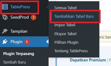 Setelah plugin aktif, menu TablePress akan muncul di dashboard WordPress Anda. Klik menu Table Press > Add New Table (Tambahkan Tabel Baru).