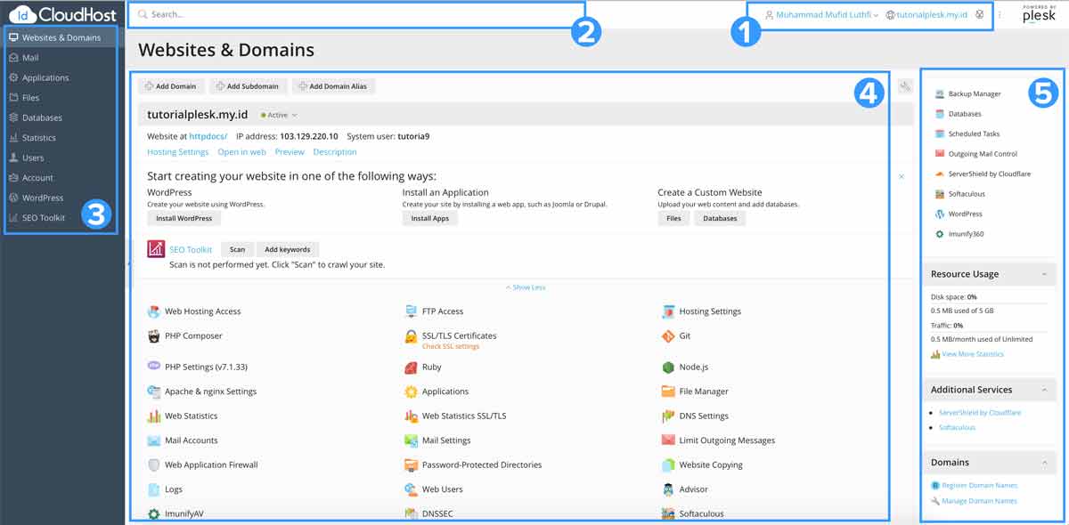 Mengenal Fitur-Fitur dan Tampilan Dashboard Plesk Hosting